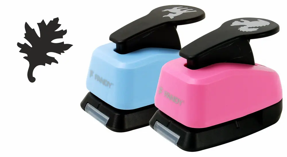 craft punch with a spring mechanism for easy punching, suitable for children, punch can cut even through thicker materials such as 2mm foam rubber and 300g paper, shape size 25 mm, blister