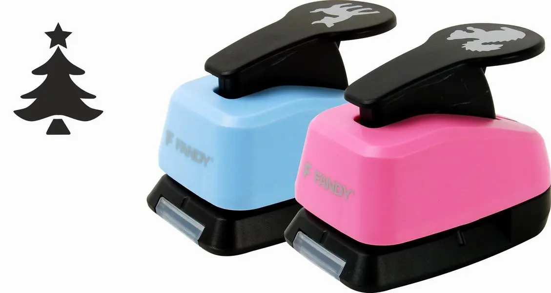 craft punch with a spring mechanism for easy punching, suitable for children, punch can cut even through thicker materials such as 2mm foam rubber and 300g paper, shape size 25 mm, blister