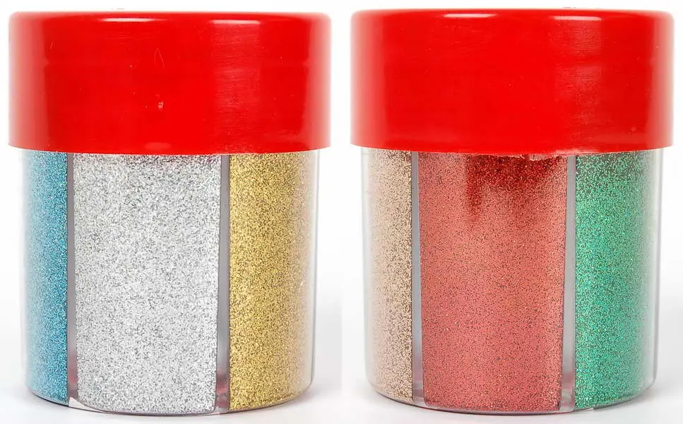glitter powder in 6 colors, in combination with the glue is an excellent complement to any creative activity, scrapbokingu and cardmaking, intended for decoration of paper, cardboard, wood and other surfaces, pack 6 x 15 g