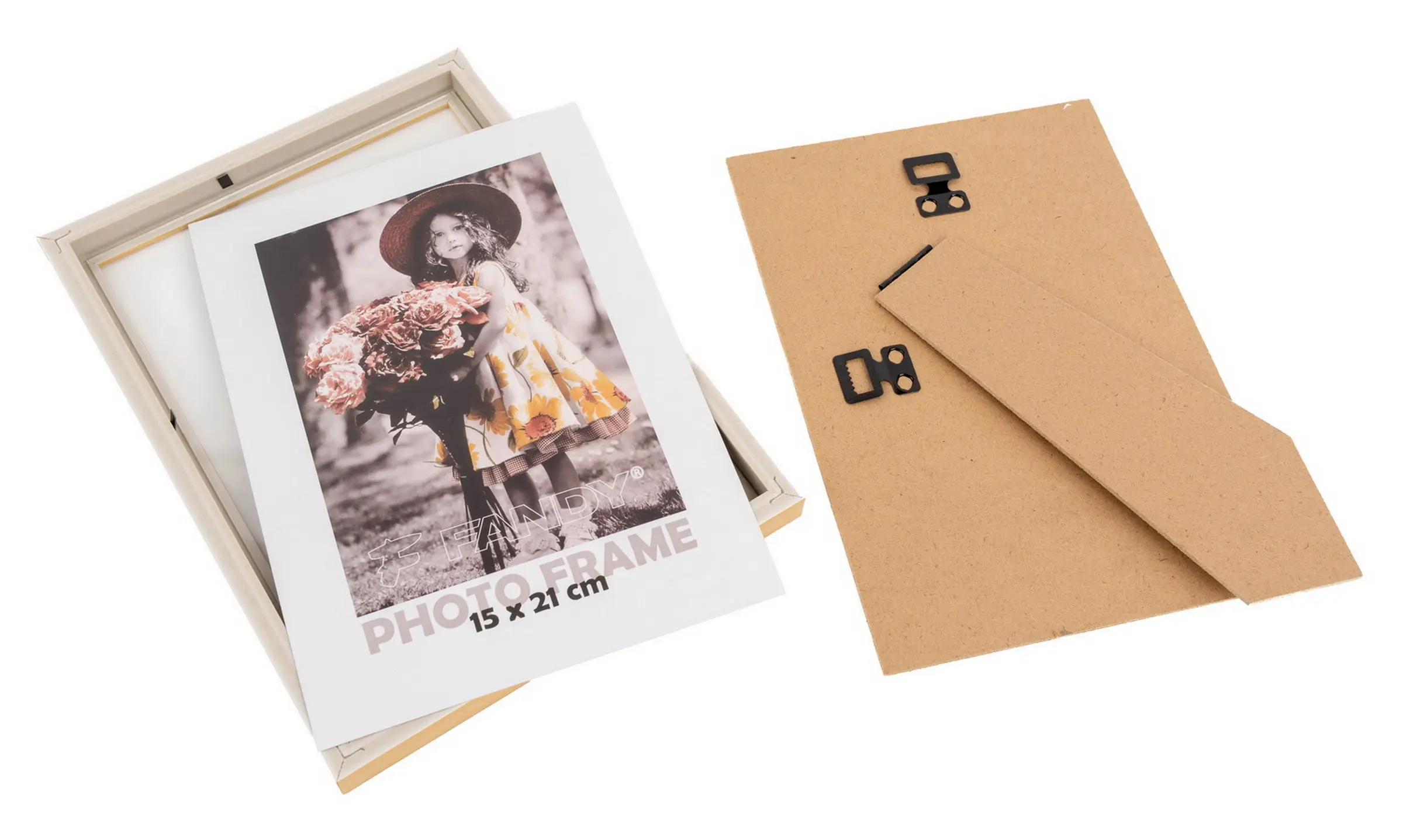 plastic frame, photo 15 x 21 cm, frame size 17 x 23 cm, for standing or hanging, width of bar 1,4 cm, photo is covered with glass