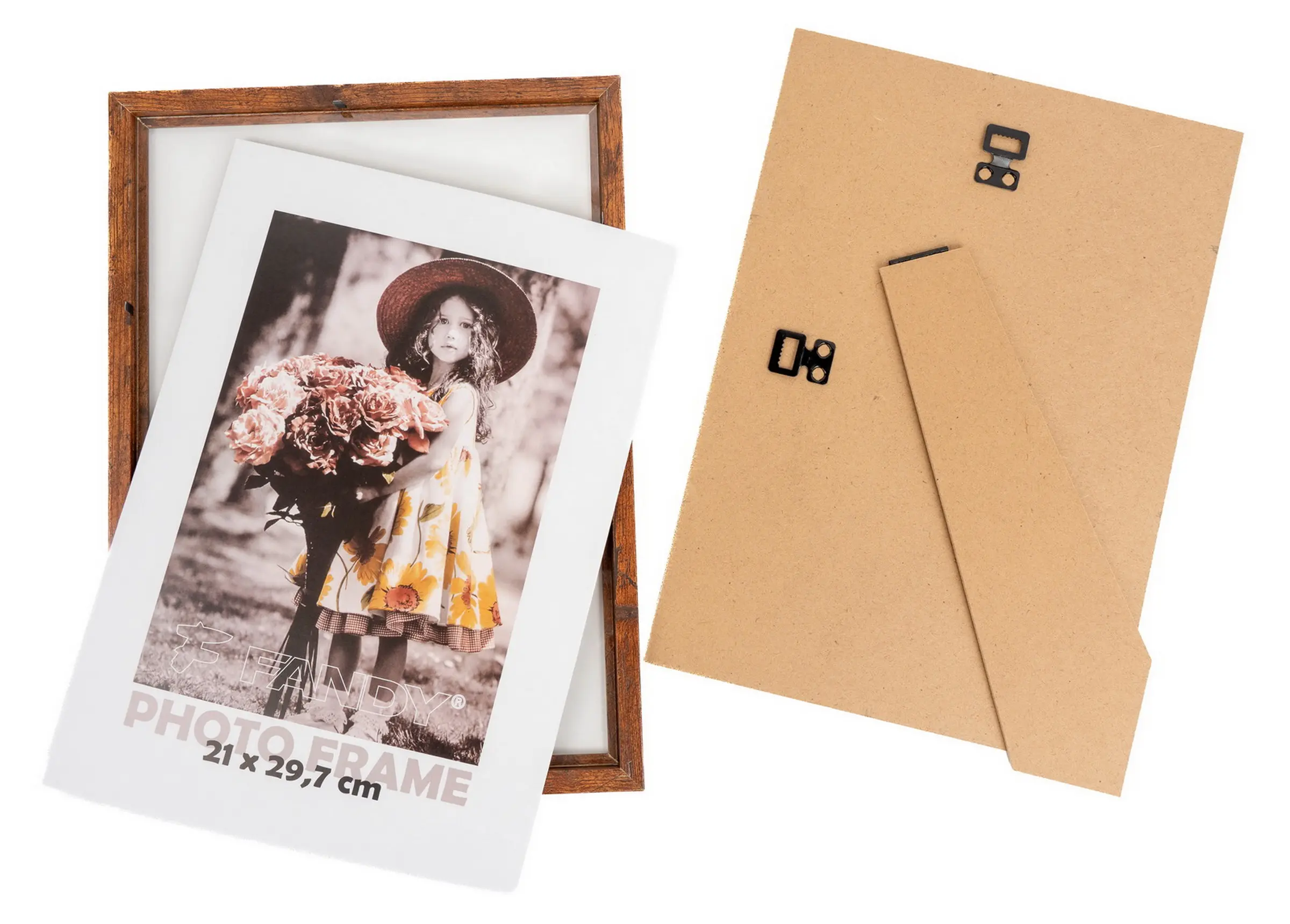 wooden frame, photo 21 x 29,7 cm, frame size 23 x 32 cm, for standing or hanging, profile width 1,5 cm, width of bar 1,5 cm, photo is covered with glass