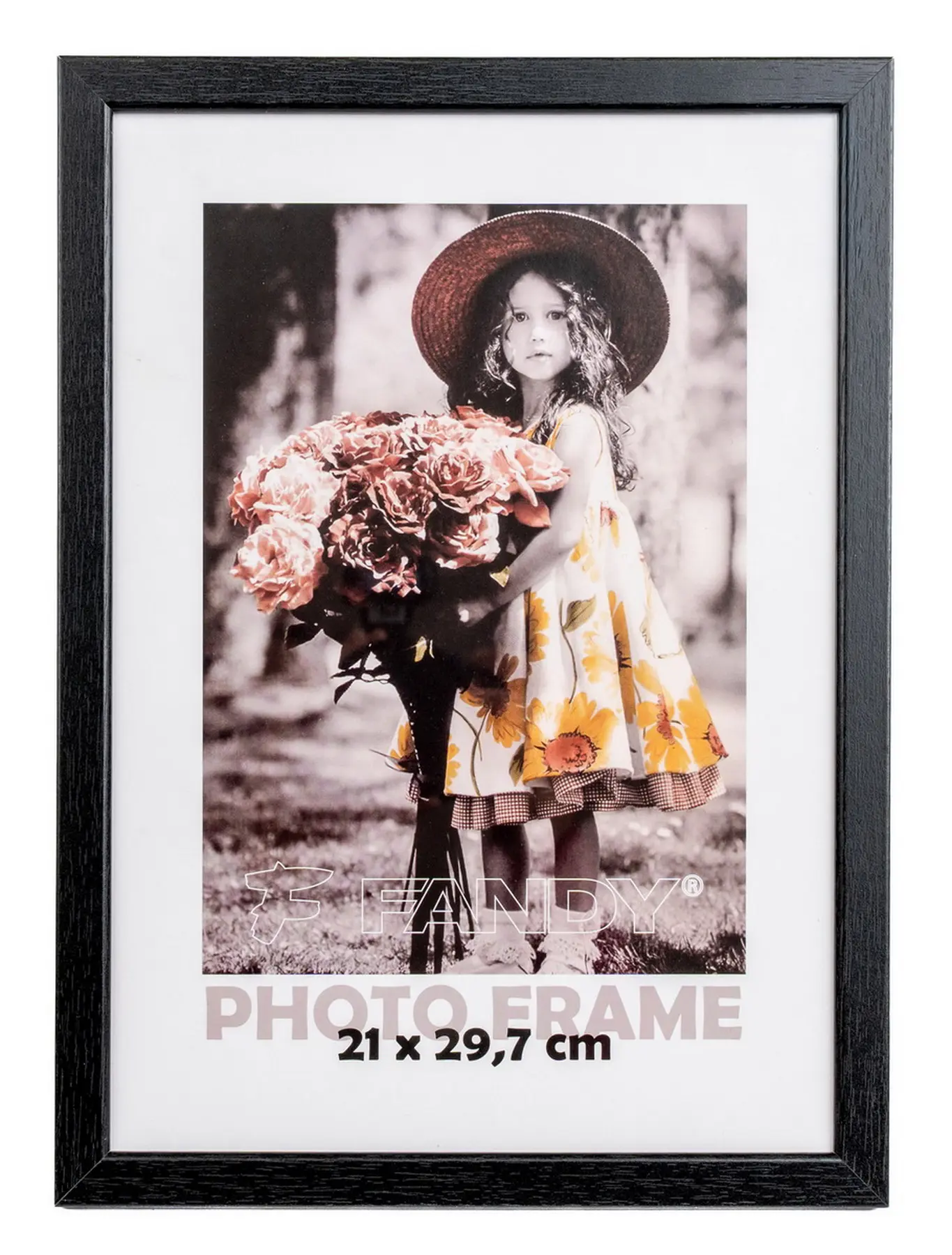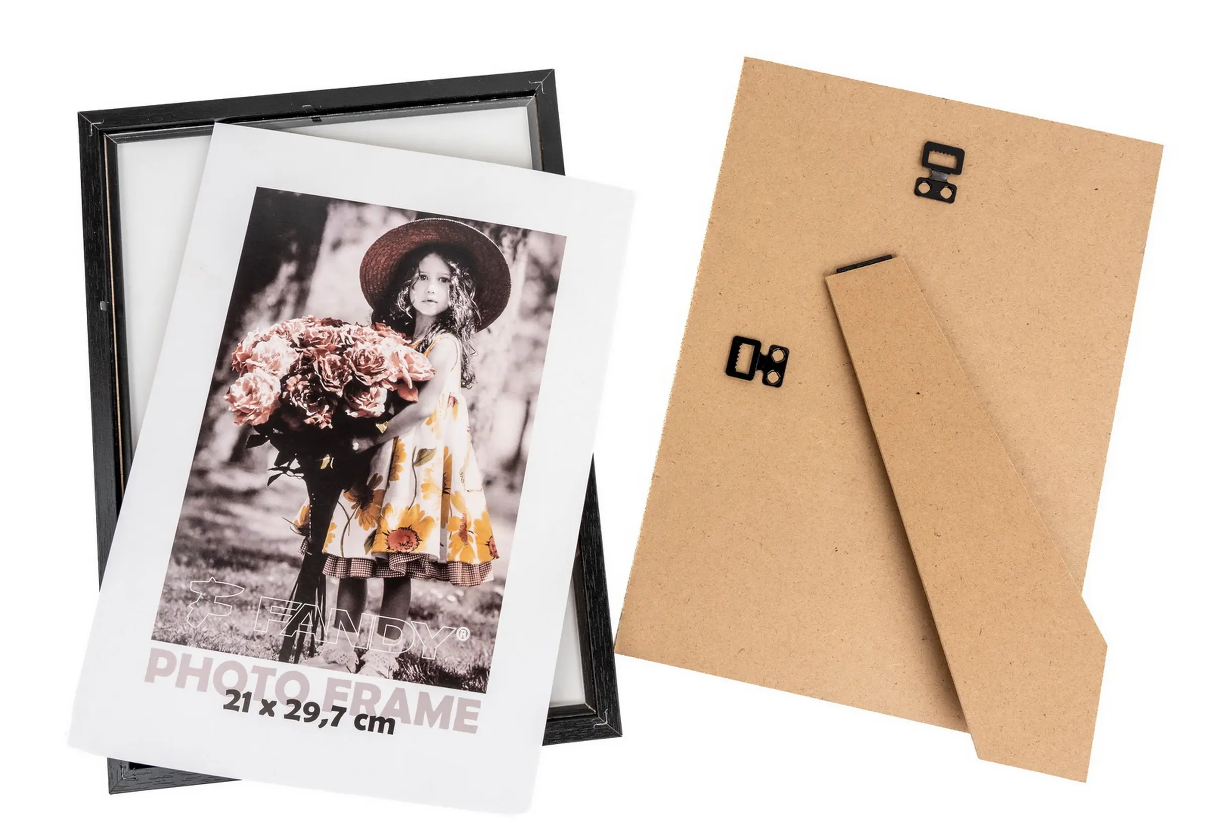 wooden frame, photo 21 x 29,7 cm, frame size 23 x 32 cm, for standing or hanging, profile width 1,5 cm, width of bar 1,5 cm, photo is covered with glass