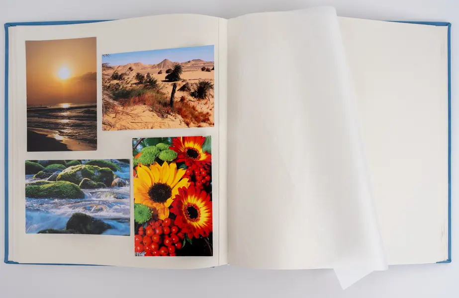 60 pages, album size 30 x 33 cm, sheet size 29 x 32 cm, dividing parchment sheets, book bound