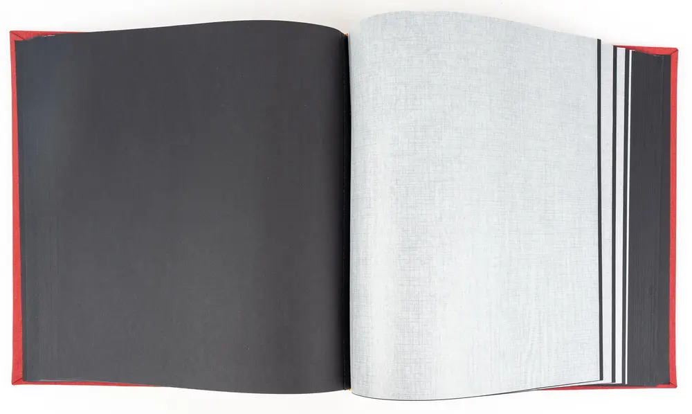 100 pages, album size 31 x 33 cm, sheet size 29 x 32 cm, dividing parchment sheets, black pages, book bound