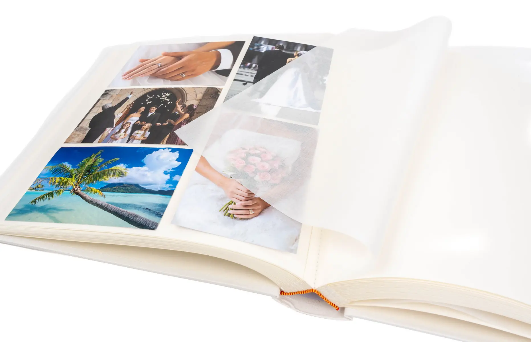 100 pages, album size 30 x 33 cm, sheet size 29 x 32 cm, dividing parchment sheets, changeable photo, book bound