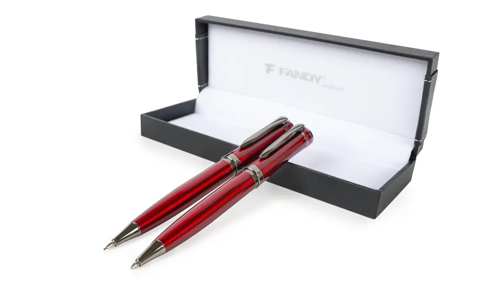 set of metal ball point pen and mechanical pencil, rotated mechanism, changeable refill F-Parker, line thickness 0,7 mm, blue ink (ballpoint pen), lead 0,5 mm (automatic pencil), luxury gift box