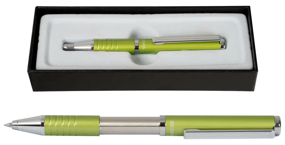 metal ballpoint pen, slide mechanism, changeable refill F-0,7 Zebra, blue ink, line thikness 0,7 mm, luxury gift box