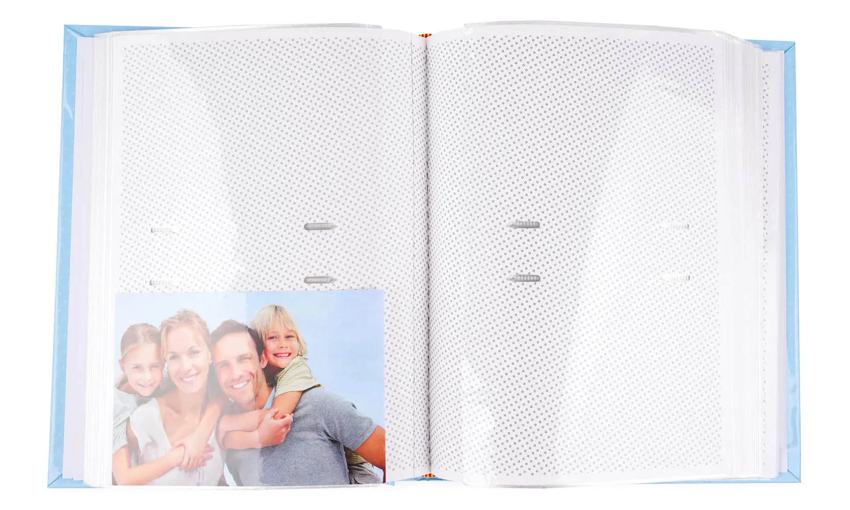 dětské zasunovací fotoalbum, 200 foto, 2 foto na stránku, rozměr alba 17,5 x 22,5 cm, vyměnitelné foto, šitá kniha