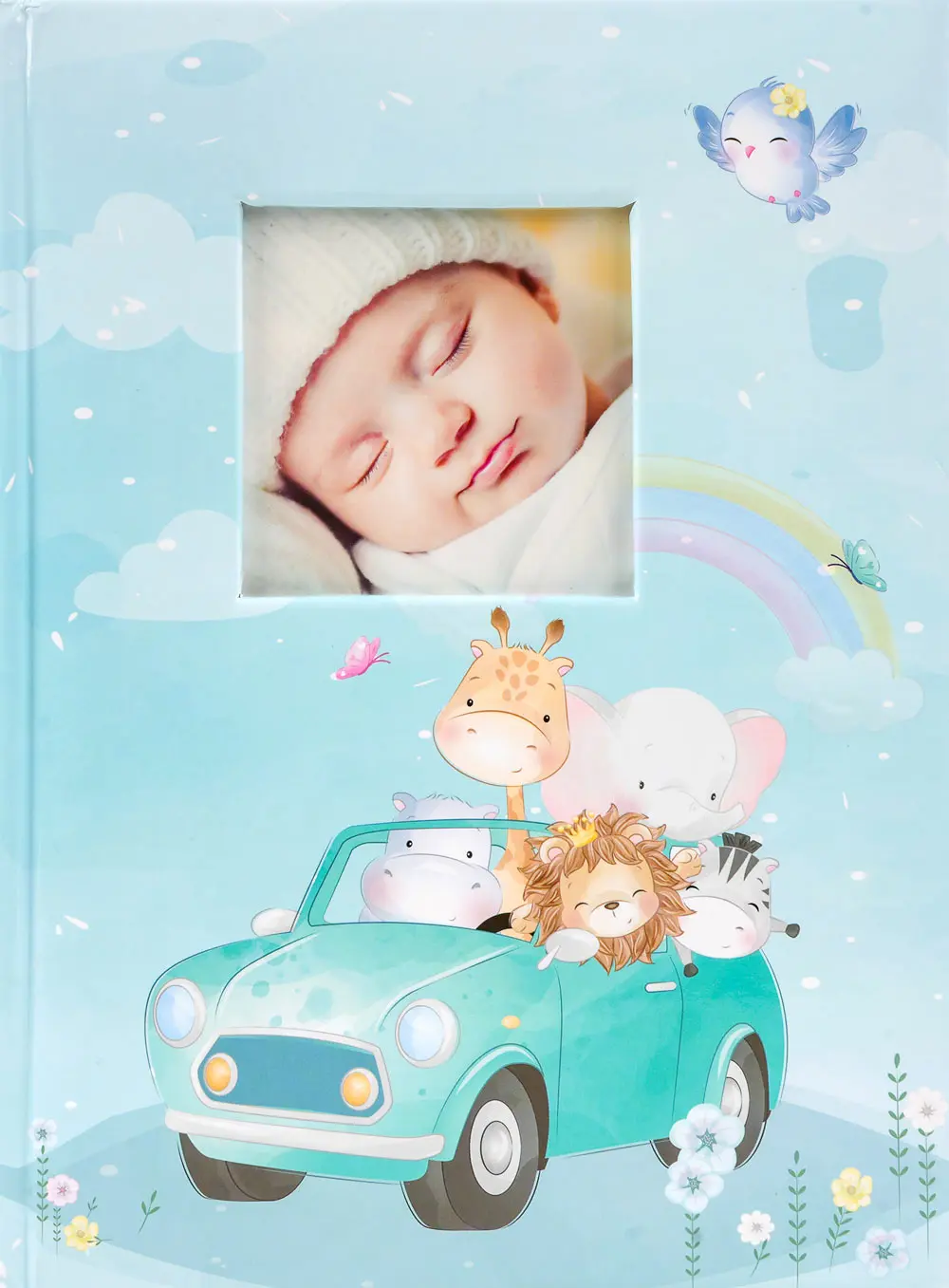 dětské zasunovací fotoalbum, 9x13, 300 foto, 2 foto na stránku, rozměr alba 17,5 x 22,5 cm, vyměnitelné foto, šitá kniha