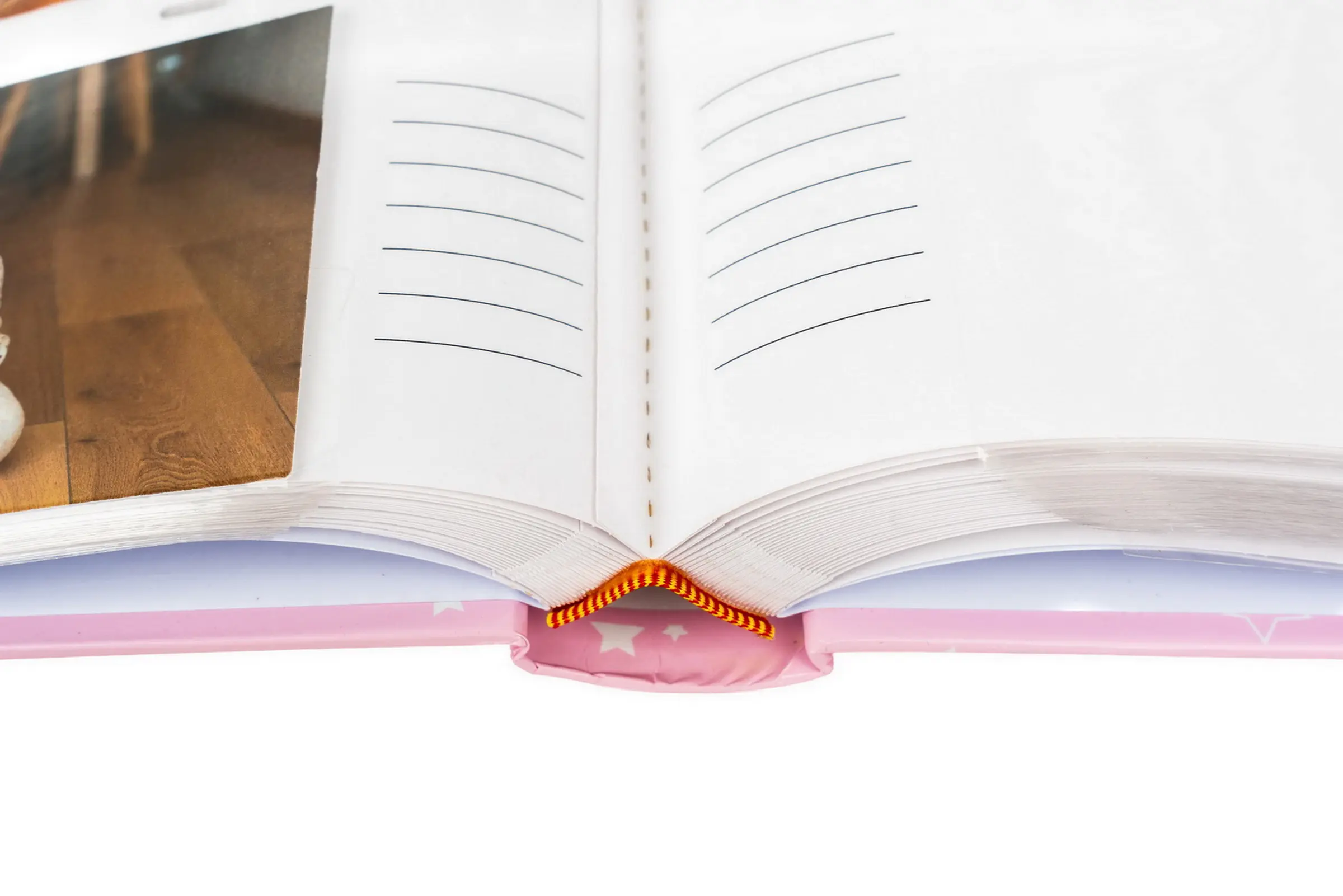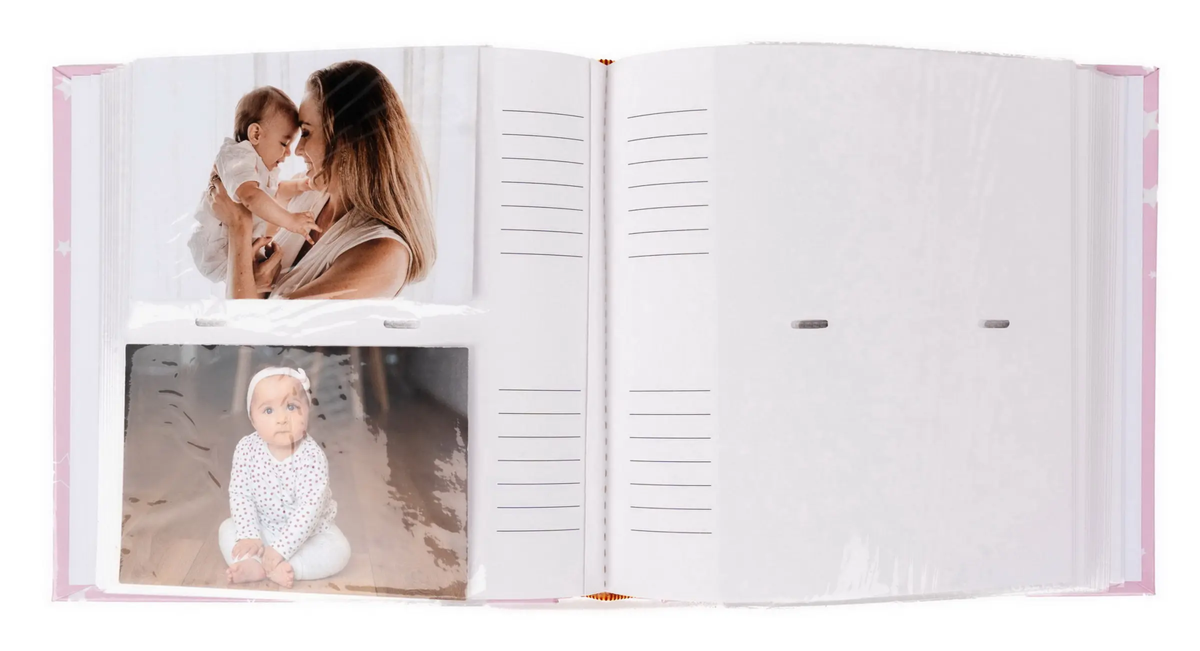 Toto zasunovací fotoalbum v provedení světle růžové barvy s dětským motivem pojme 200 fotografií o formátu 10 x 15 cm. Album ve vazbě šitá kniha má laminovanou papírovou obálku a umožňuje ukládat 2 fotografie na stránku. Bílé papírové listy obsahují prostor pro vložení popisku k fotografiím. Rozměr alba činí 22 x 22 cm.