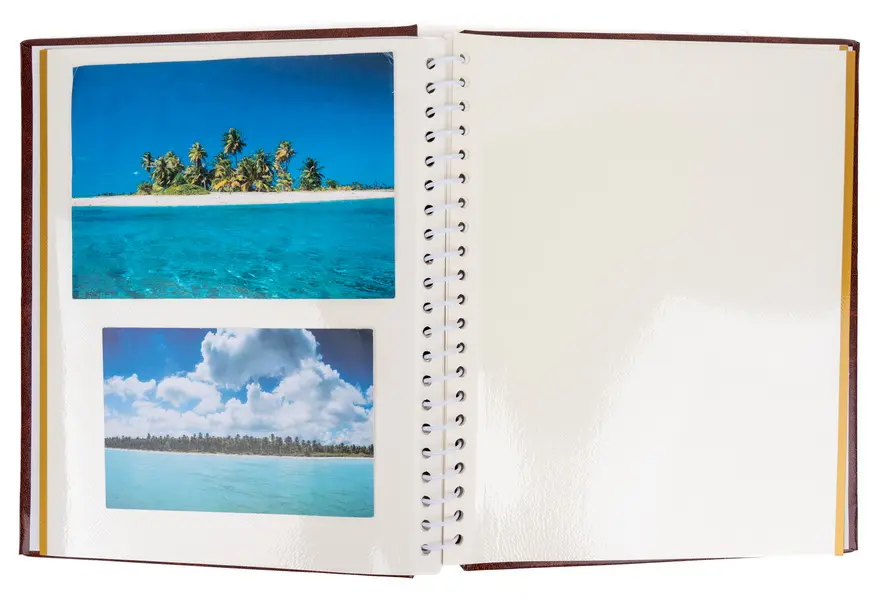 samolepicí fotoalbum, 20 stran, rozměr alba 24,5x 29 cm, rozměr listu 22,5 x 28 cm, vinylová koženka, spirálová kniha