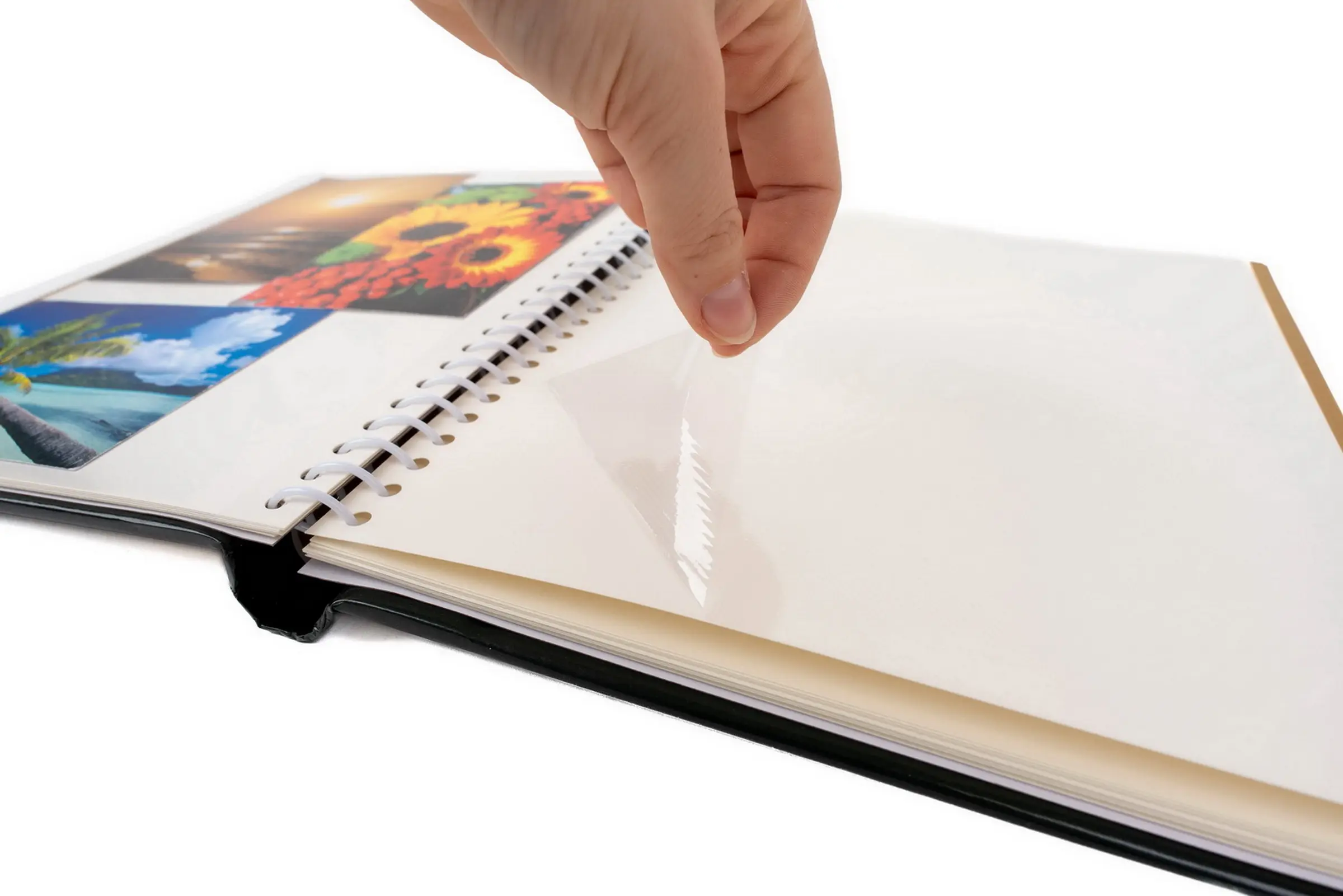 samolepicí fotoalbum, 40 stran, rozměr alba 24,5 x 29 cm, rozměr listu 22,5 x 28 cm, spirálová kniha