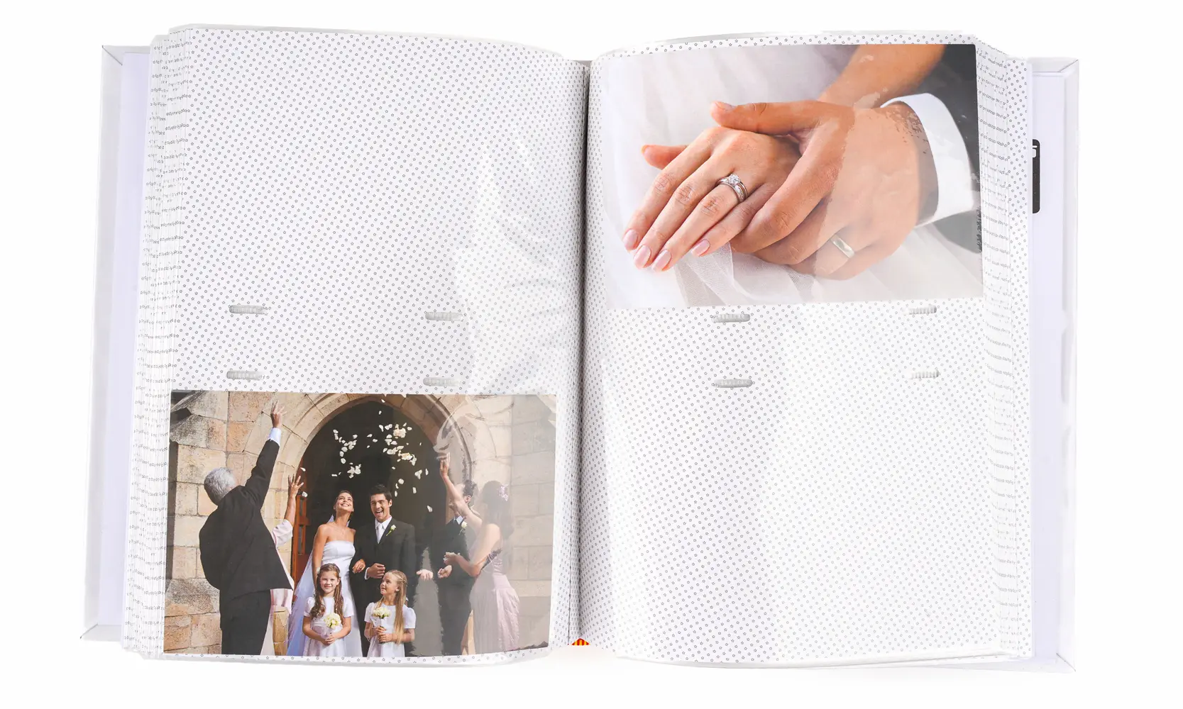 svatební zasunovací fotoalbum, 10x15, 200 foto, 2 foto na stránku, rozměr alba 19,5 x 25 cm, vyměnitelné foto, šitá kniha