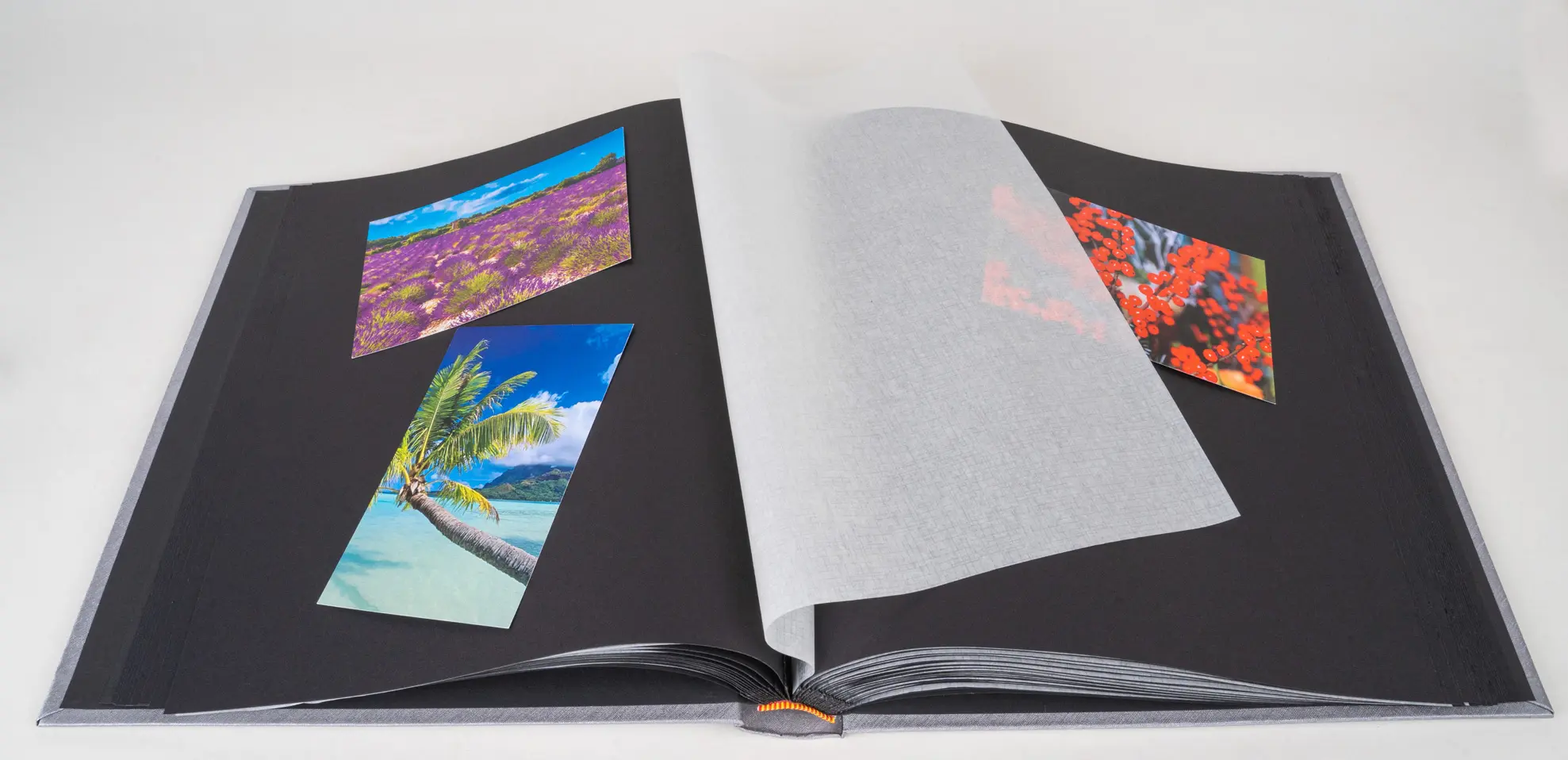 Uchovejte si vzpomínky na ty nejkrásnější okamžiky vaší svatby v tomto elegantním klasickém fotoalbu. Pevné desky z imitace kůže v stříbrné barvě a šitá vazba zaručují odolnost a dlouhou životnost. Album s decentním motivem má navíc praktické okénko pro vložení vlastní fotografie. Album obsahuje 60 černých stran, na které je možné vkládat fotografie libovolného formátu pomocí fotorůžků nebo lepidla. Na černé listy je možné psát popisky bílým či stříbrným popisovačem, takže zachytíte nejen obrazy, ale i příběhy a emoce. Mezi jednotlivými stranami jsou jemné pergamenové listy, které chrání fotografie před slepením.