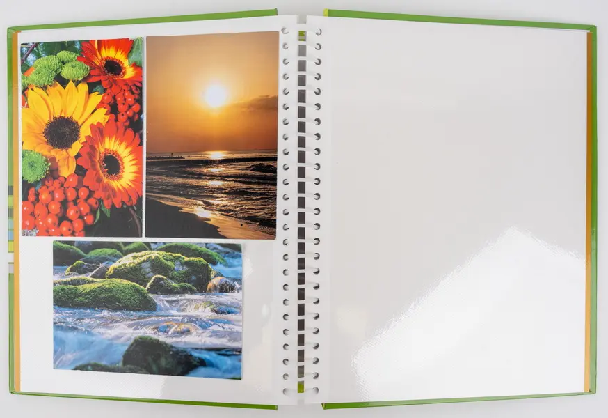 samolepicí fotoalbum, 20 stran, rozměr alba 24,5 x 29 cm, rozměr listu 22,5 x 28 cm, spirálová kniha