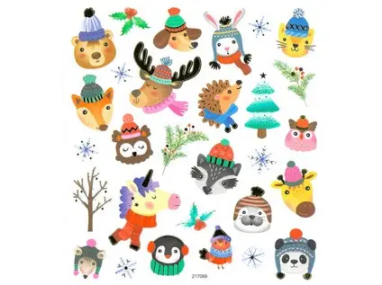 29 ks papírových samolepek, velikost samolepky cca 1,5-4 cm, rozměr archu 15 x 17 cm
