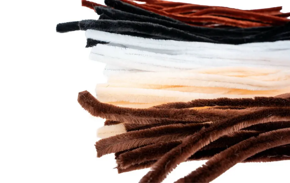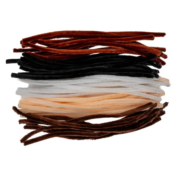 Jedná se o velkou sadu 50 kusů dekoračních chlupatých drátků (ženilkové dráty), které jsou ideální pro kreativní tvoření, vyrábění dekorací a modelování, zejména při tvorbě postaviček. Drátky jsou v mixu neutrálních barev (např. tmavě hnědá, světle hnědá/rezavá, béžová, bílá a černá). Jsou lehce tvarovatelné, mají průměr 1 cm a každý kus má délku 30 cm.