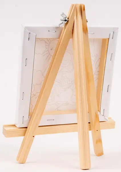plátno o gramáži 260 g/m2 s předtištěným obrázkem a dřevěným stojánkem, možné použít akvarelové fixy, akrylové barvy, barevné tužky apod., plátno má jasnou bílou barvu, rozměr plátna 15 x 15 cm, rozměr stojánku 23 x 18 cm