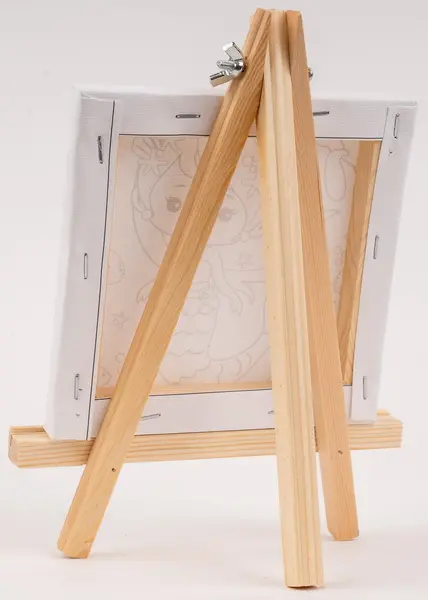 plátno o gramáži 260 g/m2 s předtištěným obrázkem a dřevěným stojánkem, možné použít akvarelové fixy, akrylové barvy, barevné tužky apod., plátno má jasnou bílou barvu, rozměr plátna 15 x 15 cm, rozměr stojánku 23 x 18 cm