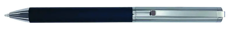 vyměnitelná náplň typ F-Parker • šíře hrotu 1 mm • modrý inkoust • celokovové • gumová úchopová část pro příjemné psaní • otočný mechanismus • dodáváno v černé krabičce