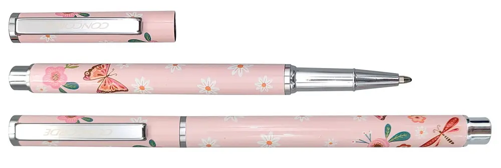 vyměnitelná náplň typ F-Parker • šíře hrotu 1 mm • modrý inkoust • celokovové s víčkem • elegantní s dekorativními motivy • dodáváno v papírové krabičce, která ladí se samotným perem