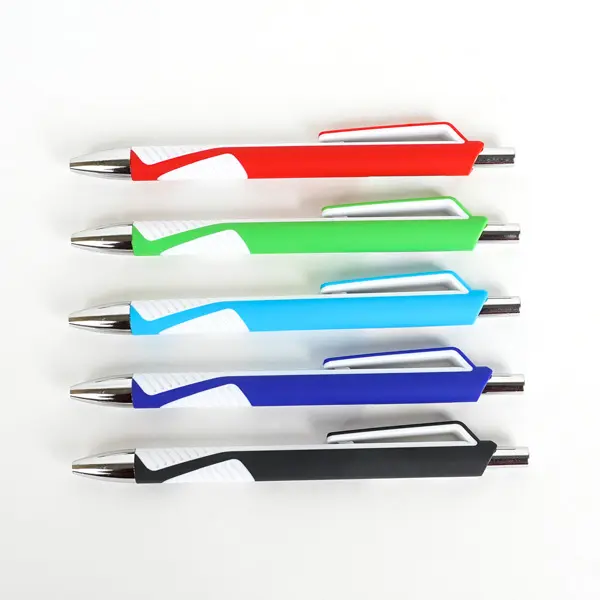 plastikowy długopis, mechanizm ściskający, wymienny wkład typu F-411, grubość końcówki 0,7 mm, nadaje się do nadruków reklamowych