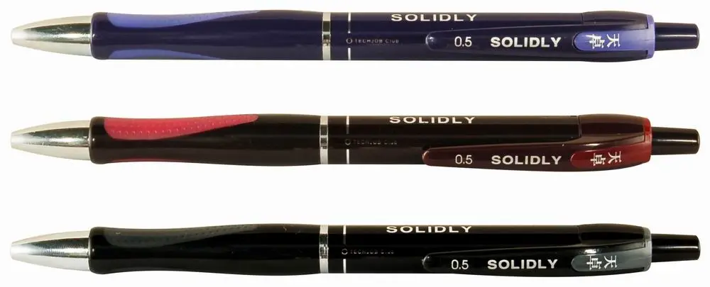 plastikowy długopis, automatyczny, ergonomiczna obudowa z uchwytem antypoślizgowym, wymienny wkład F-411, niebieski kolor tuszu, grubość linii 0,5 mm, miks kolorów