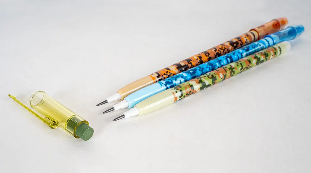ołowek z wymiennymi końcówkami, zintegrowana gumka w wieczku, mix kolorów