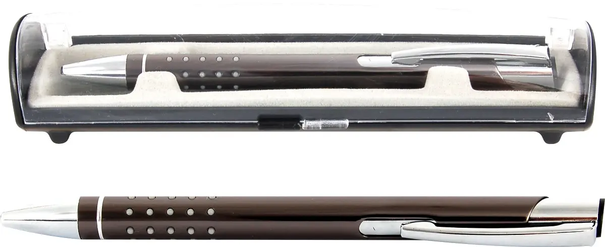 metalowy długopis automatyczny, wymienny wkład F-Parker, uchwyt z gumowymi wypustkami dla wygodnego trzymania, niebieski kolor tuszu, grubość linii 0,7 mm, pudełko upominkowe