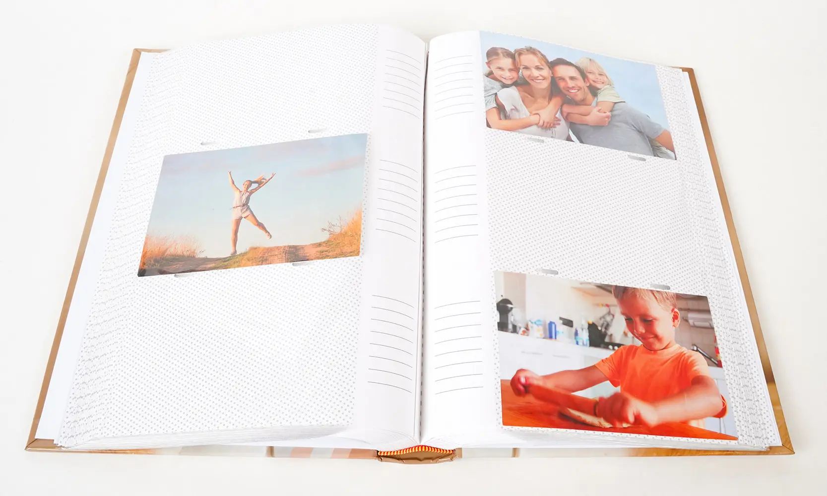 300 foto, 3-up, rozmiar albumu 22 x 33 cm, szyty