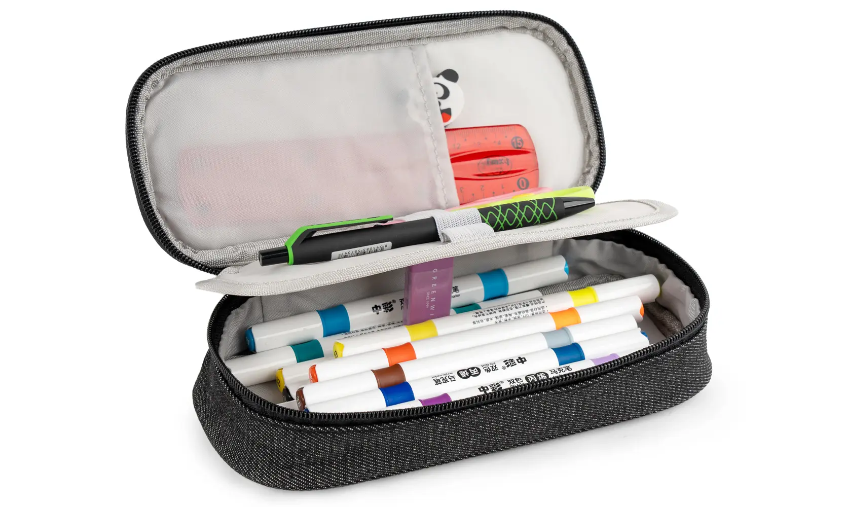 tekstylne etui z zamkiem błyskawicznym, zmywalna powierzchnia, rozmiar 21,5 x 9 x 6 cm