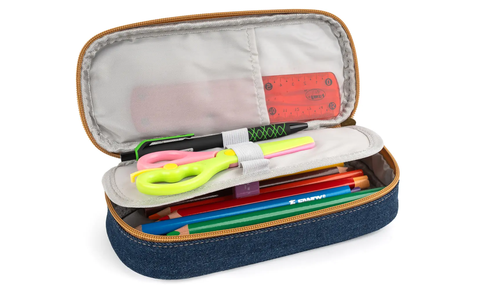 tekstylne etui z zamkiem błyskawicznym, zmywalna powierzchnia, rozmiar 21,5 x 9 x 5,5 cm