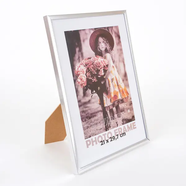 plastikowa ramka, foto 21 x 29,7 cm, rozmiar ramki 22 x 30,5 cm, do postawienia, szekorość listwy 0,7 cm, zdjęcie zakryte szkłem