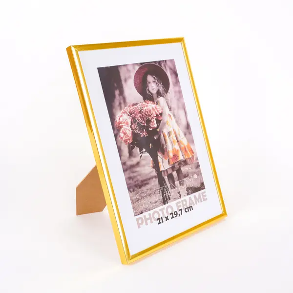 plastikowa ramka, foto 21 x 29,7 cm, rozmiar ramki 22 x 30,5 cm, do postawienia, szekorość listwy 0,7 cm, zdjęcie zakryte szkłem