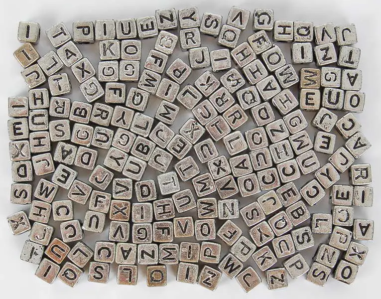 koraliki w kształcie kostek z literami, rozmiar 6 mm, w opakowaniu 30 g