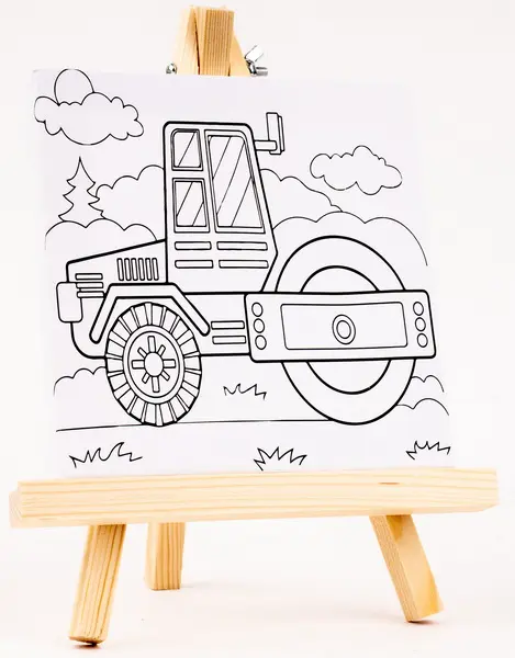 płótno o gramaturze 260 g/m2 z nadrukowanym obrazkiem i drewnianym stojakiem, można używać markerów akwarelowych, farb akrylowych, kolorowych ołówków itp., płótno ma jasnobiały kolor, wymiary płótna 15 x 15 cm, wymiary stojaka 23 x 18 cm