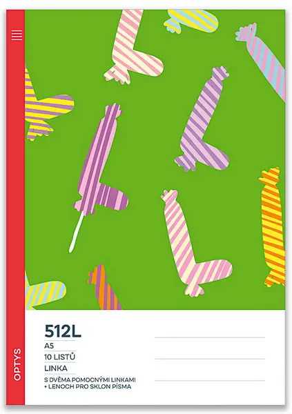 formát A5 • 10 listů • linkovaný • pro nejmenší školáky • dvě pomocné linky • 2x lenoch, který se už nikdy neztratí – je součástí obalu v přední i zadní části sešitu • školák si jim podloží danou stránku a snadno dodržuje sklon písma • moderní design • motiv: bonbóny ve tvaru L (jako lenoch)