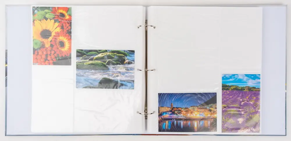 Ide o fotoalbum s laminovanou obálkou a moderným, abstraktným motívom inšpirovaným prírodou. Album má krúžkovú väzbu, ktorá uľahčuje manipuláciu s listami. Je určené pre 500 fotografií formátu 10 x 15 cm, ktoré sa vkladajú zasúvaním. Listy sú vyrobené z bieleho PVC/PP materiálu a neumožňujú popisky. Vďaka tomuto jedinečnému motívu je album ideálne na uchovanie spomienok z ciest, dovolenky alebo iných cenných zážitkov, ktorým chcete dodať nádych výnimočnosti.