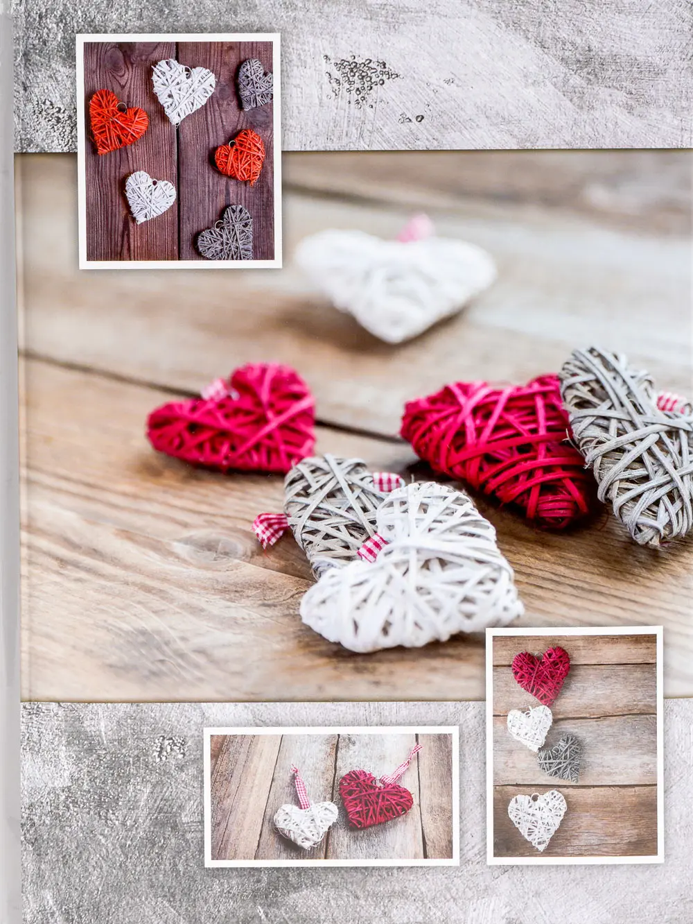 Uchovajte si svoje spomienky v tomto elegantnom fotoalbume s motívom srdiečok. Pevné dosky z laminovaného papiera a šitá väzba zaručujú odolnosť a dlhú životnosť. Album s romantickým motívom srdiečok v rôznych farbách a dreveného pozadia je ideálne na uloženie fotiek z láskyplných chvíľ a zároveň predstavuje štýlový doplnok do každej domácnosti. Album pojme až 200 fotografií s rozmerom 9 x 13 cm, ktoré sa vkladajú po dvoch nad sebou do priehľadných vreciek. Medzi fotografiami je navyše priestor pre vlastné popisky, vďaka ktorým si ľahko uchováte všetky dôležité okamihy.