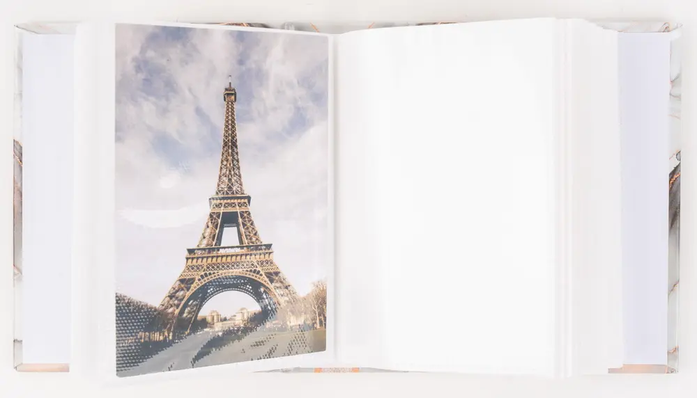 Ide o malý a kompaktný zasúvací fotoalbum s laminovanou obálkou. Album má zváranú väzbu vo forme knihy. Je ideálny na uchovanie 100 fotografií formátu 9 x 13 cm, ktoré sa vkladajú zasúvaním, a neumožňuje popisky. Listy sú vyrobené z bieleho PVC/PP materiálu. Na obálke je vyobrazený abstraktný motív pripomínajúci mramor v moderných tónoch šedej, bielej, čiernej a zlatej/medenej farby. Vďaka tomuto modernému a neutrálnemu motívu je album ideálny na uchovanie akýchkoľvek spomienok.