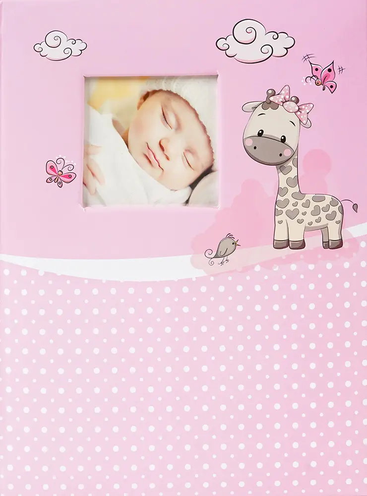 Uchovajte si spomienky na detstvo vo fotoalbume s motívom žirafy v ružovej farbe. Vďaka šitej väzbe a kvalitnému laminovanému papieru je album veľmi odolný. Zmestí sa doň až 200 fotografií vo formáte 9 x 13 cm, ktoré sa vkladajú dve nad seba. Medzi fotografiami je navyše priestor pre vkladacie popisy. Album taktiež ponúka možnosť vymeniť fotografiu na obale, čo z neho urobí jedinečnú pamiatku.