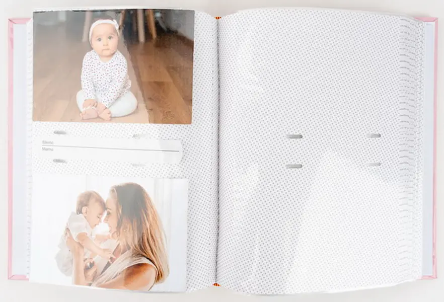 Ide o roztomilý detský fotoalbum s laminovanou obálkou v ružovej farbe, ideálny pre dievčatá. Album má šitú väzbu, ktorá zaručuje jeho dlhú životnosť. Je určené pre 300 fotografií formátu 10 x 15 cm, ktoré sa vkladajú zasúvaním dve nad seba. Medzi fotografiami je priestor na popisky. Listy sú vyrobené z bieleho papiera. Na obálke je vyobrazený veselý motív medvedíka na oslave s balónmi a konfetami. V hornej časti obálky je okienko na vloženie vlastnej vymeniteľnej fotografie (napr. fotografie dieťaťa), čo dodáva albumu osobný ráz. Je to skvelý darček pre novopečených rodičov na uchovanie spomienok na prvé roky života dieťaťa.