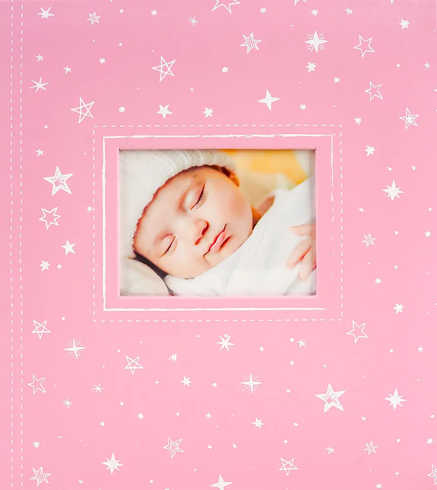 Uchovajte si spomienky na detstvo v tomto roztomilom detskom fotoalbume. Pevné dosky z napodobeniny kože a šitá väzba zaručujú odolnosť a dlhú životnosť. Album v ružovej farbe s motívom hviezdičiek a prešívania má navyše praktické okienko na vloženie vlastnej fotografie. Obsahuje 60 strán s veľkorysým rozmerom 29 x 32 cm, na ktoré môžete vkladať fotografie ľubovoľného formátu pomocou fotorohov alebo lepidla. Jemné pergamenové listy chránia vaše spomienky pred poškodením a zlepením. Vďaka svojmu hravému dizajnu je tento album ideálny na uchovanie fotografií vášho bábätka a stane sa tak krásnou rodinnou pamiatkou.