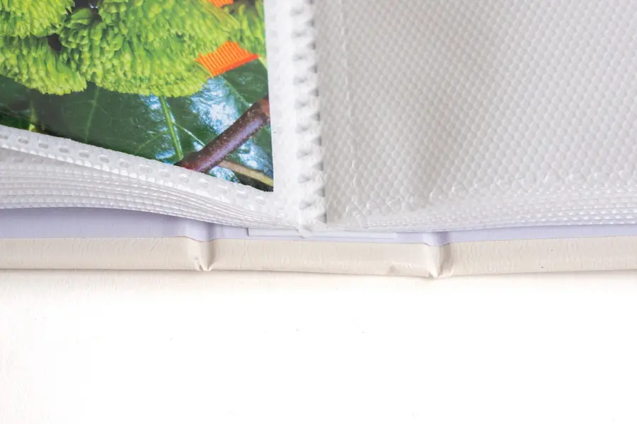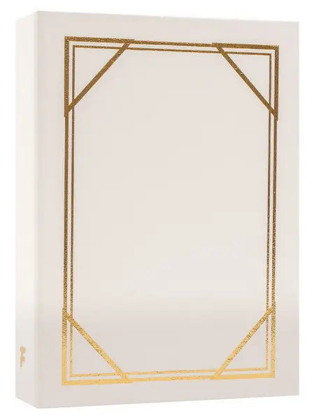 Ide o malý a kompaktný zasúvací fotoalbum s doskami potiahnutými vinylovou koženkou v bielej farbe. Album má zváranú väzbu vo forme knihy. Je ideálny na uchovanie 36 fotografií formátu 10 x 15 cm, ktoré sa vkladajú zasúvaním, a neumožňuje popisky. Listy sú vyrobené z bieleho PVC/PP materiálu. Na obálke je po obvode vyobrazený jednoduchý zlatý geometrický rámček. Vďaka svojmu luxusnému a jednofarebnému dizajnu je album ideálny na uchovanie spomienok z ciest, svadieb alebo iných cenných zážitkov.