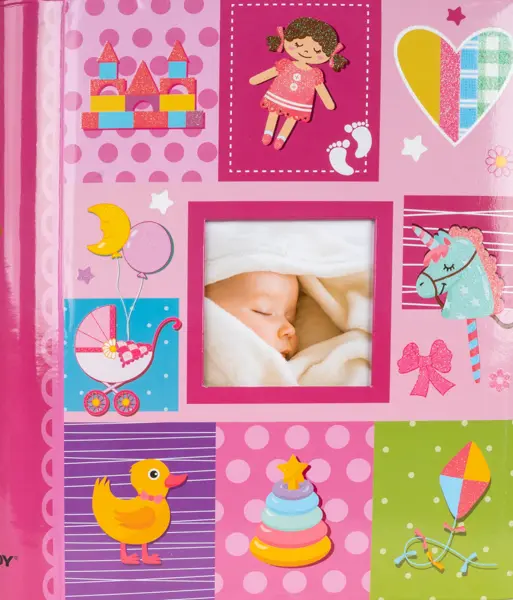 Uchovajte si spomienky na prvé roky života vášho bábätka v tomto krásnom fotoalbume. Pevné dosky z laminovaného papiera v ružovom vyhotovení a špirálová väzba zaručujú odolnosť a dlhú životnosť. Obal albumu zdobí veselý patchworkový motív s detskými obrázkami. Navyše má praktické okienko, do ktorého je možné vložiť vlastnú fotografiu. Album obsahuje 60 samolepiacich strán, na ktoré je možné vkladať fotografie ľubovoľného formátu.