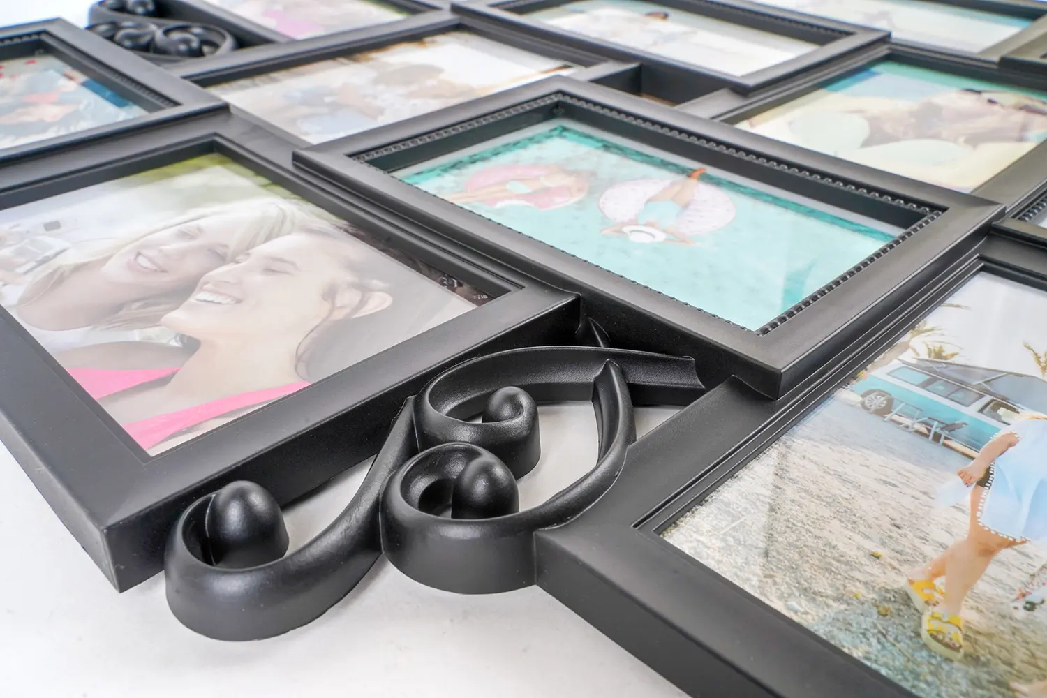 plastový rámček na 8 foto 10 x 15 cm a 4 foto 9 x 13 cm, rozmer rámčeka 55 x 50,5 cm, na zavesenie, fotografia je krytá plexisklom