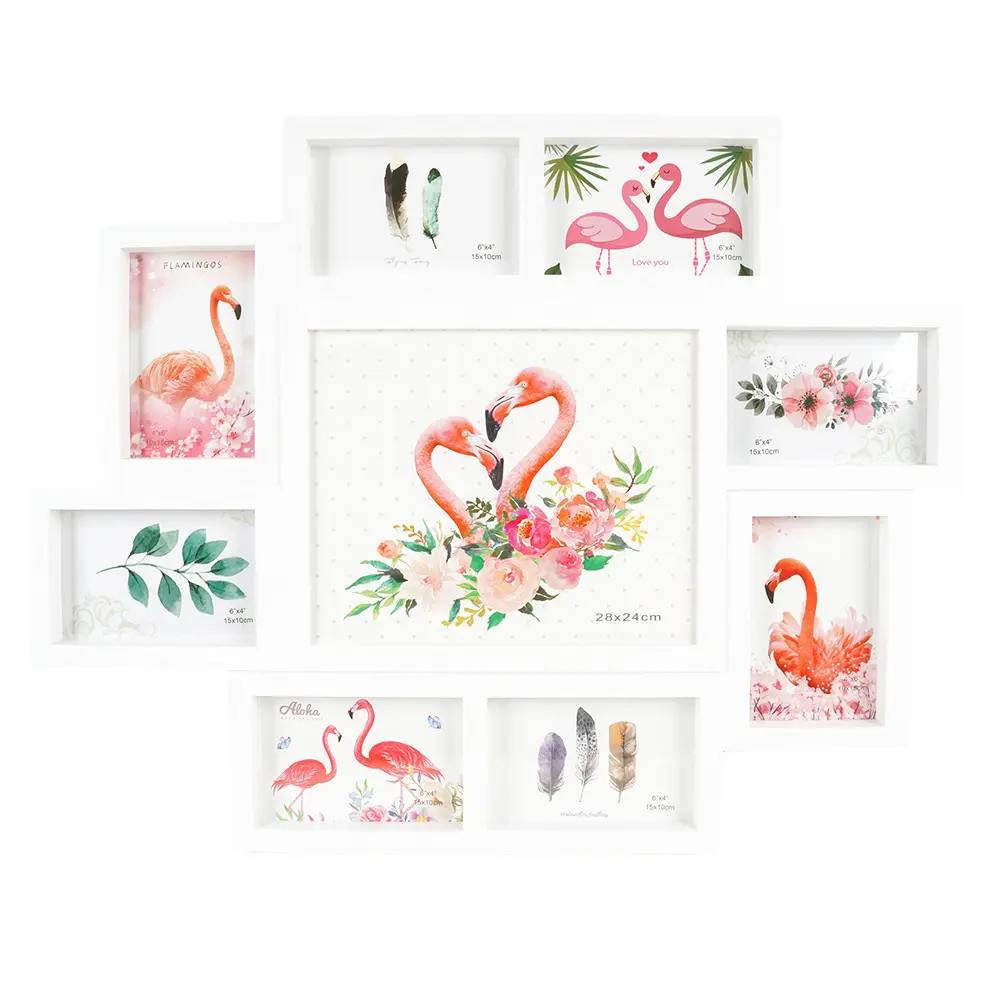 plastový rámček na 1 foto 28 x 24 cm a 8 fotografií 10 x 15 cm, veľkosť rámčeka 61,5 x 48 cm, na zavesenie, fotografia je krytá plexisklom