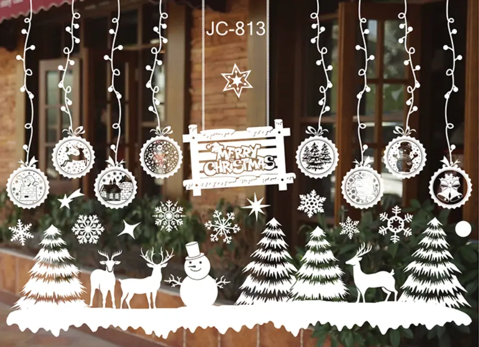 dekorácie bez lepidla, drží vďaka svojim elektrostatickým vlastnostiam, je vhodná na okná, dvere alebo zrkadlá, formát 35 x 50 cm, 2 archy s niekoľkými jednotlivými nálepkami, mix vzorov