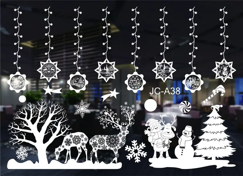 dekorácie bez lepidla, drží vďaka svojim elektrostatickým vlastnostiam, je vhodná na okná, dvere alebo zrkadlá, formát 35 x 50 cm, 2 archy s niekoľkými jednotlivými nálepkami, mix vzorov