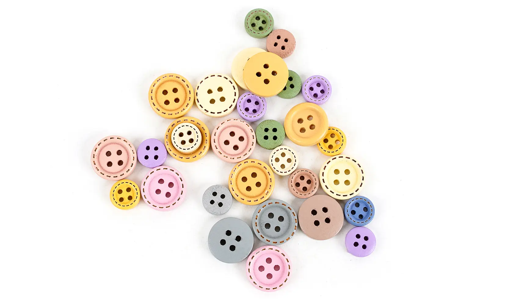 drevené ozdobné gombíky, mix pastelových farieb, mix veľkostí - 15 x 1 cm, 15 x 1,5 cm, balené 30 ks